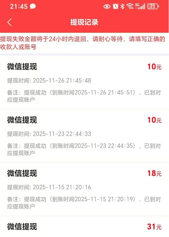 下面是部分用户操作 宅云汇 软件,做的项目真实收益截图(服务器空间有限,会不定期清理往期内容,请见谅),每天都有朋友入手和反馈,另外还在观望犹豫的朋友你们的想法我们无法左右,不尝试永远没机会,不坚持永远不知道,我们只能更努力把软件做好,保证我们的软件质量更加优质与稳定。